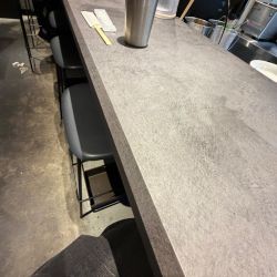 店内は黒基調でオシャレな、今日現在厨房向きカウンター7席に4人掛けテーブル席が1卓、3人掛けテーブル席が1卓ありお水は卓上のピッチャーにてセルフ(席下に荷物カゴ、奥にお手洗いあり)。