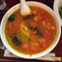 JR根岸線山手駅から15分弱、大きな通り沿い、3階建ての上は事務所?でしょうか?の1階にあります。赤オレンジの看板、ドア、窓枠、白地の壁、微妙におしゃれっぽい感じ。メニュー掲示なし、外が明るいので店内は見えません。